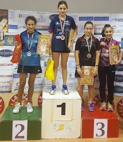 Prima a scendere in campo è stata Etur Martina impegnata in un girone unico all’italiana di nove partecipanti iscritta per ottava nel seeding iniziale. Martina ha complessivamente giocato otto partite vincendone sei sconfiggendo tra l’altro le due rappresentanti del TT Castel Goffredo Cicuttini Cecilia (Testa di serie n. 1) e Busnardo Milena (testa di serie n. 4). Meritatissima medaglia d’argento tenuto conto che rispetto al seeding iniziale Martina ha scalato ben cinque posizioni.